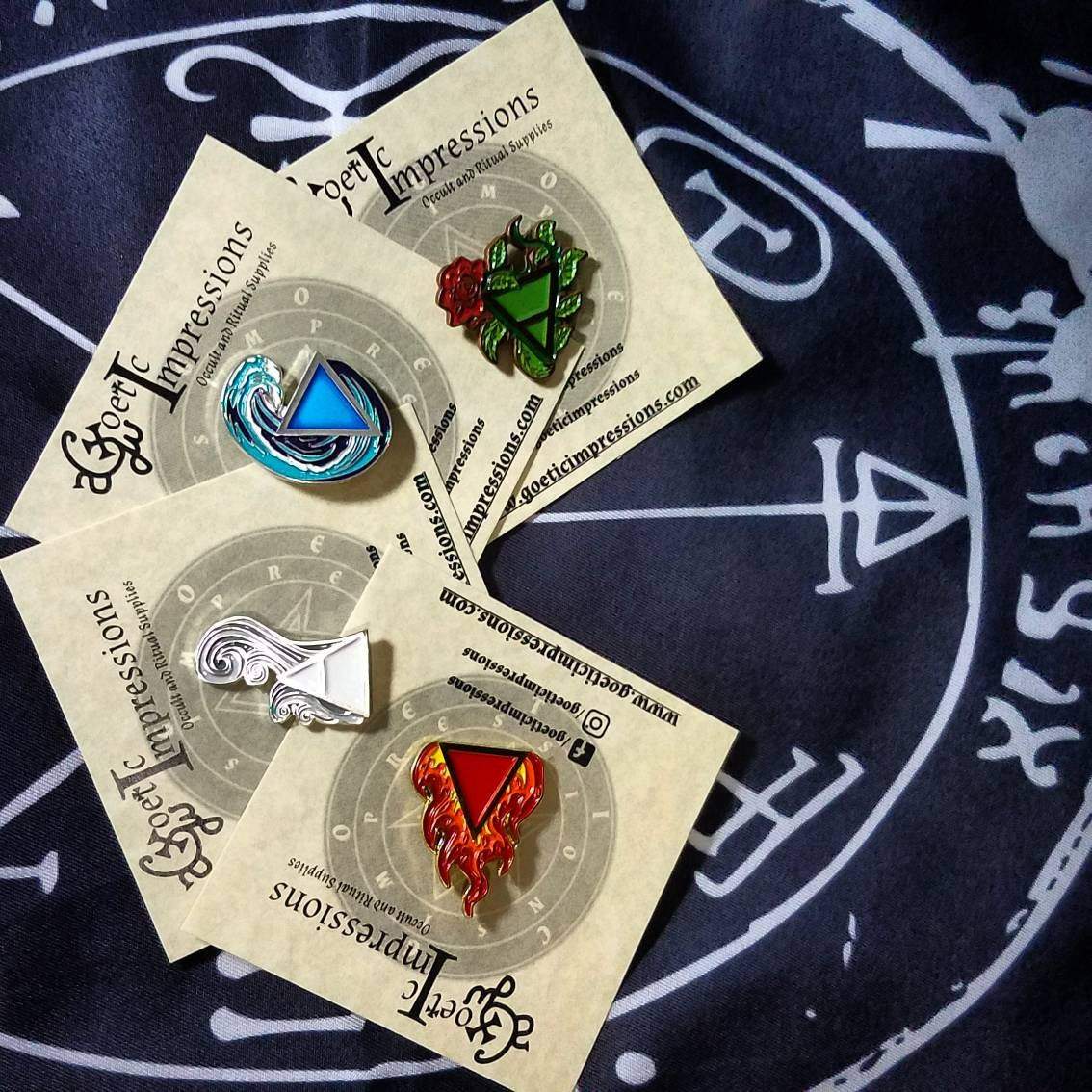 Sulfur - One of the Three Alchemy Primes (Tria Prima). Show your alchemy credentials to the world with this soft enamel pin customized to show both the elemental alchemical sign of sulfur, as well as an artistic representation of the element. Wear this pin in style without the smell or the poison!